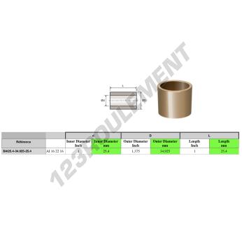 La Bague Bronze connue sous la référence BAI25.400-34.925-25.400 Générique possède un diamètre intérieur de 25.4 mm, un diamètre extérieur de 34.925 mm et une longueur de 25.4 mm. Elle est fabriquée en .
