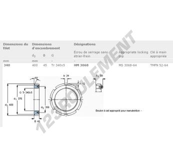 Cet écrou HM3068-SKF possède un diamètre intérieur de 340mm, un diamètre extérieur de 400mm et une épaisseur de 45mm.