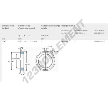 Cet écrou HM50T-SKF possède un diamètre intérieur de 246mm, un diamètre extérieur de 320mm et une épaisseur de 36mm.