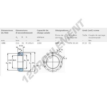 Cet écrou KMT38-SKF possède un diamètre intérieur de 190mm, un diamètre extérieur de 214mm et une épaisseur de 32mm.