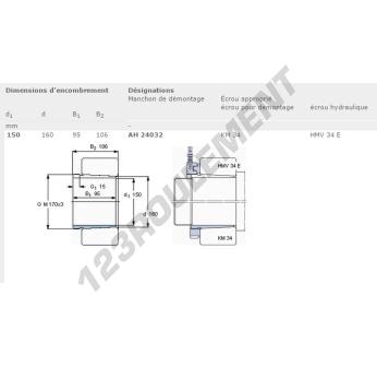 Le Manchon, connu sous la référence AH24032-SKF SKF, possède un diamètre intérieur de 150 mm, un diamètre extérieur de 160 mm et une épaisseur de 95 mm.
