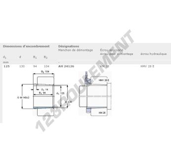 Le Manchon, connu sous la référence AH24126-SKF SKF, possède un diamètre intérieur de 125 mm, un diamètre extérieur de 130 mm et une épaisseur de 94 mm.