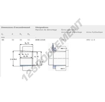 Le Manchon, connu sous la référence AHX2310-SKF SKF, possède un diamètre intérieur de 45 mm, un diamètre extérieur de 50 mm et une épaisseur de 50 mm.