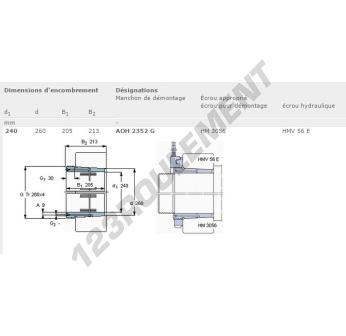 Le Manchon, connu sous la référence AOH2352G-SKF SKF, possède un diamètre intérieur de 240 mm, un diamètre extérieur de 260 mm et une épaisseur de 205 mm.