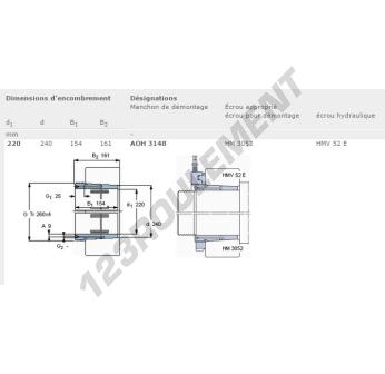 Le Manchon, connu sous la référence AOH3148-SKF SKF, possède un diamètre intérieur de 220 mm, un diamètre extérieur de 240 mm et une épaisseur de 154 mm.