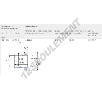 Le Manchon, connu sous la référence H3120-SKF SKF, possède un diamètre intérieur de 90 mm, un diamètre extérieur de 130 mm et une épaisseur de 76 mm.