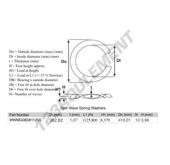La Rondelle Ondulée Fendue de référence SWSW-410.010-382.820-1.070-10-SS possède un diamètre intérieur de 382.82 mm et une épaisseur de 1.07 mm. Elle est fabriquée en matière INOX.