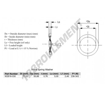 La Rondelle Ondulée de référence WSW-71.53-55.88-0.76 possède un diamètre intérieur de 55.88 mm et une épaisseur de 0.76 mm. Elle est fabriquée en matière ACIER.