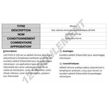 La SI-5135-310ML-LOCTITE est une colle silicone haute performance en grande quantité, idéale pour des applications industrielles nécessitant une étanchéité durable. Elle offre une résistance aux températures extrêmes et aux produits chimiques agressifs, tout en maintenant une flexibilité optimale pour des joints souples et durables.