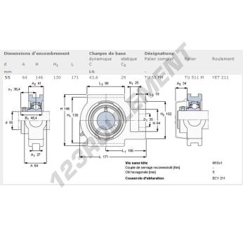 Le Palier - 1 Fixation connu sous la référence TU55-FM-SKF SKF possède un diamètre d'alésage de 55 mm. Cette référence est fabriquée en fonte et le type de serrage est par vis de blocage.
