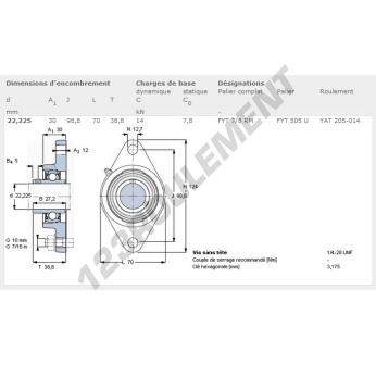 Le Palier - 2 Fixations connu sous la référence FYT7-8-RM-SKF SKF possède un diamètre d'alésage de 22.23 mm et un entraxe de fixation de 98.8 mm. Cette référence est fabriquée en fonte et le type de serrage se fait par vis de blocage.