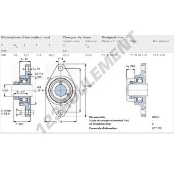 Le Palier - 2 Fixations connu sous la référence FYTB50-FM-SKF SKF possède un diamètre d'alésage de 50 mm et un entraxe de fixation de 157 mm. Cette référence est fabriquée en fonte et le type de serrage se fait par Bague de blocage excentrique.