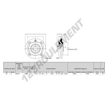 Le Palier - 4 Fixations connu sous la référence MFC25-RHP de la marque RHP possède un diamètre d'alésage de 25 mm et un entraxe de fixation de 92.1 mm. Cette référence est fabriquée en fonte et le type de serrage se fait par vis de blocage.