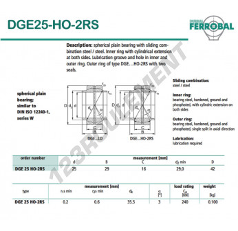 La Rotule Ge connue sous la référence DGE25-HO-2RS-DURBAL, de la marque DURBAL possède un diamètre intérieur de 25mm, un diamètre extérieur de 42mm et une épaisseur de 16mm.