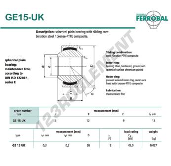 La Rotule Geew connue sous la référence GE15-UK-DURBAL, de la marque DURBAL possède un diamètre intérieur de 15mm, un diamètre extérieur de 26mm et une épaisseur de 9mm.