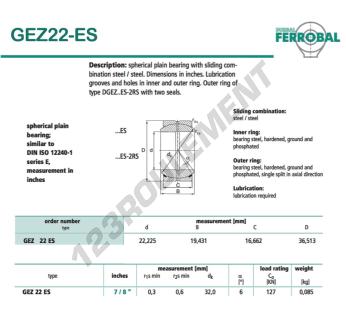La Rotule Geew connue sous la référence GEZ22-ES-DURBAL, de la marque DURBAL possède un diamètre intérieur de 22.225mm, un diamètre extérieur de 36.513mm et une épaisseur de 16.662mm.