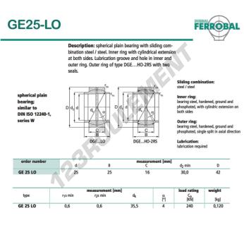La Rotule Geg connue sous la référence GE25-LO-DURBAL DURBAL possède un diamètre intérieur de 25 mm, un diamètre extérieur de 42 mm et une épaisseur de 16 mm.