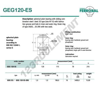 La Rotule Geg connue sous la référence GEG120-ES-DURBAL DURBAL possède un diamètre intérieur de 120 mm, un diamètre extérieur de 210 mm et une épaisseur de 70 mm.