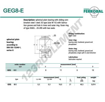 La Rotule Geg connue sous la référence GEG8-E-DURBAL DURBAL possède un diamètre intérieur de 8 mm, un diamètre extérieur de 19 mm et une épaisseur de 6 mm.