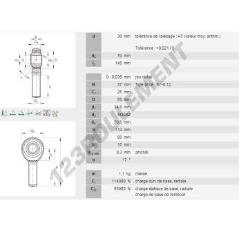 La Rotule Sa connue sous la référence GAKR30PW-INA, de la marque INA possède un pas de vis de et un , un diamètre intérieur de 30mm, un diamètre extérieur de 145mm et une épaisseur de 37mm.