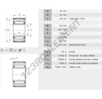 Le Roulement à Aiguilles, connu sous la référence PNA20-42-INA, de la marque INA, possède un diamètre intérieur de 20mm, un diamètre extérieur de 42mm et une épaisseur de 20mm.