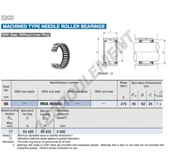 Le Roulement à Aiguilles, connu sous la référence RNA49-58-U-IKO, de la marque IKO, possède un diamètre intérieur de 65mm, un diamètre extérieur de 82mm et une épaisseur de 25mm.