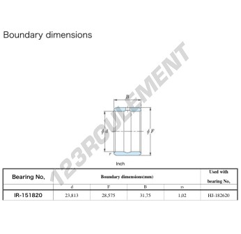 La Bague Intérieure connue sous la référence IR-15-18-20-JTEKT de la marque JTEKT possède un diamètre intérieur de 23.813 mm, un diamètre extérieur de 28.575 mm et une longueur de 31.75 mm.