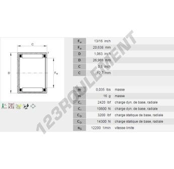 La Douille à Aiguilles, connue sous la référence BCE138-INA, de la marque INA, possède un diamètre intérieur de 20.64 mm, un diamètre extérieur de 26.99 mm et une épaisseur de 12.7 mm.