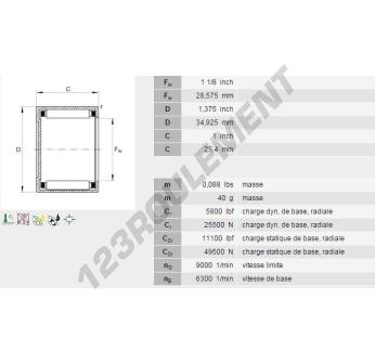La Douille à Aiguilles, connue sous la référence BCE1816-INA, de la marque INA, possède un diamètre intérieur de 28.58 mm, un diamètre extérieur de 34.93 mm et une épaisseur de 25.4 mm.