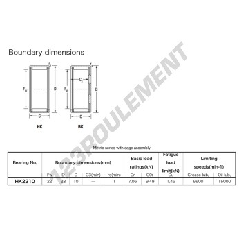 La Douille à Aiguilles, connue sous la référence HK2210-JTEKT, de la marque JTEKT, possède un diamètre intérieur de 22 mm, un diamètre extérieur de 28 mm et une épaisseur de 10 mm.