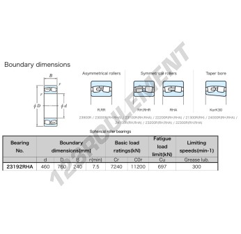 Le Roulement à Billes, connu sous la référence 23192-RHA-JTEKT, de la marque JTEKT, possède un diamètre intérieur de 460mm, un diamètre extérieur de 760mm et une épaisseur de 240mm.
