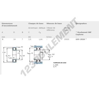 Le Roulement à Billes, connu sous la référence 609-2RSH-SKF, de la marque SKF, possède un diamètre intérieur de 9mm, un diamètre extérieur de 24mm et une épaisseur de 7mm.