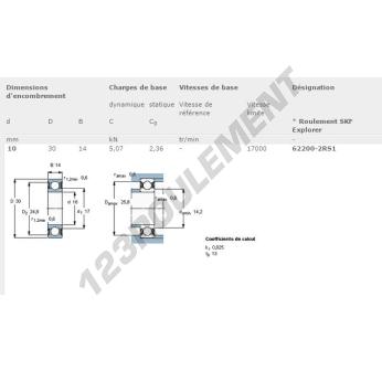Le Roulement à Billes, connu sous la référence 62200-2RS1-SKF, de la marque SKF, possède un diamètre intérieur de 10mm, un diamètre extérieur de 30mm et une épaisseur de 14mm.