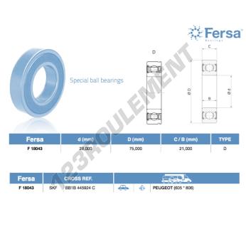 Le Roulement à Billes, connu sous la référence F18043-ASFERSA, de la marque ASFERSA, possède un diamètre intérieur de 28mm, un diamètre extérieur de 75mm et une épaisseur de 21mm.