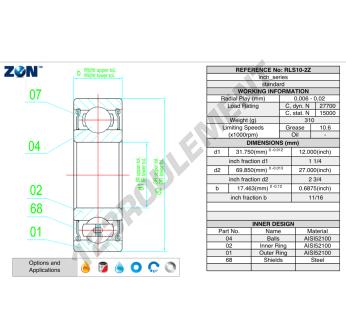 Le Roulement à Billes, connu sous la référence RLS10-2Z-ZEN, de la marque ZEN, possède un diamètre intérieur de 31.8mm, un diamètre extérieur de 69.9mm et une épaisseur de 17.5mm.