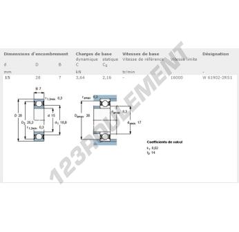 Le Roulement à Billes, connu sous la référence W61902-2RS1-SKF, de la marque SKF, possède un diamètre intérieur de 15mm, un diamètre extérieur de 28mm et une épaisseur de 7mm.