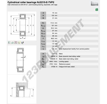 Le Roulement à Rouleaux, connu sous la référence NJ2215-E-TVP2-FAG, de la marque FAG, possède un diamètre intérieur de 75 mm, un diamètre extérieur de 130 mm et une épaisseur de 31 mm.
