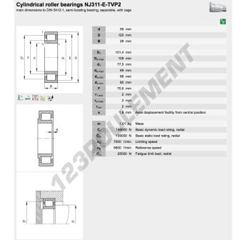 Le Roulement à Rouleaux, connu sous la référence NJ311-E-XL-TVP2-FAG, de la marque FAG, possède un diamètre intérieur de 55 mm, un diamètre extérieur de 120 mm et une épaisseur de 29 mm.
