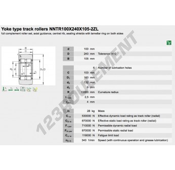 Le Roulement à Rouleaux, connu sous la référence NNTR100X240X105-2ZL-INA, de la marque INA, possède un diamètre intérieur de 100 mm, un diamètre extérieur de 240 mm et une épaisseur de 105 mm.